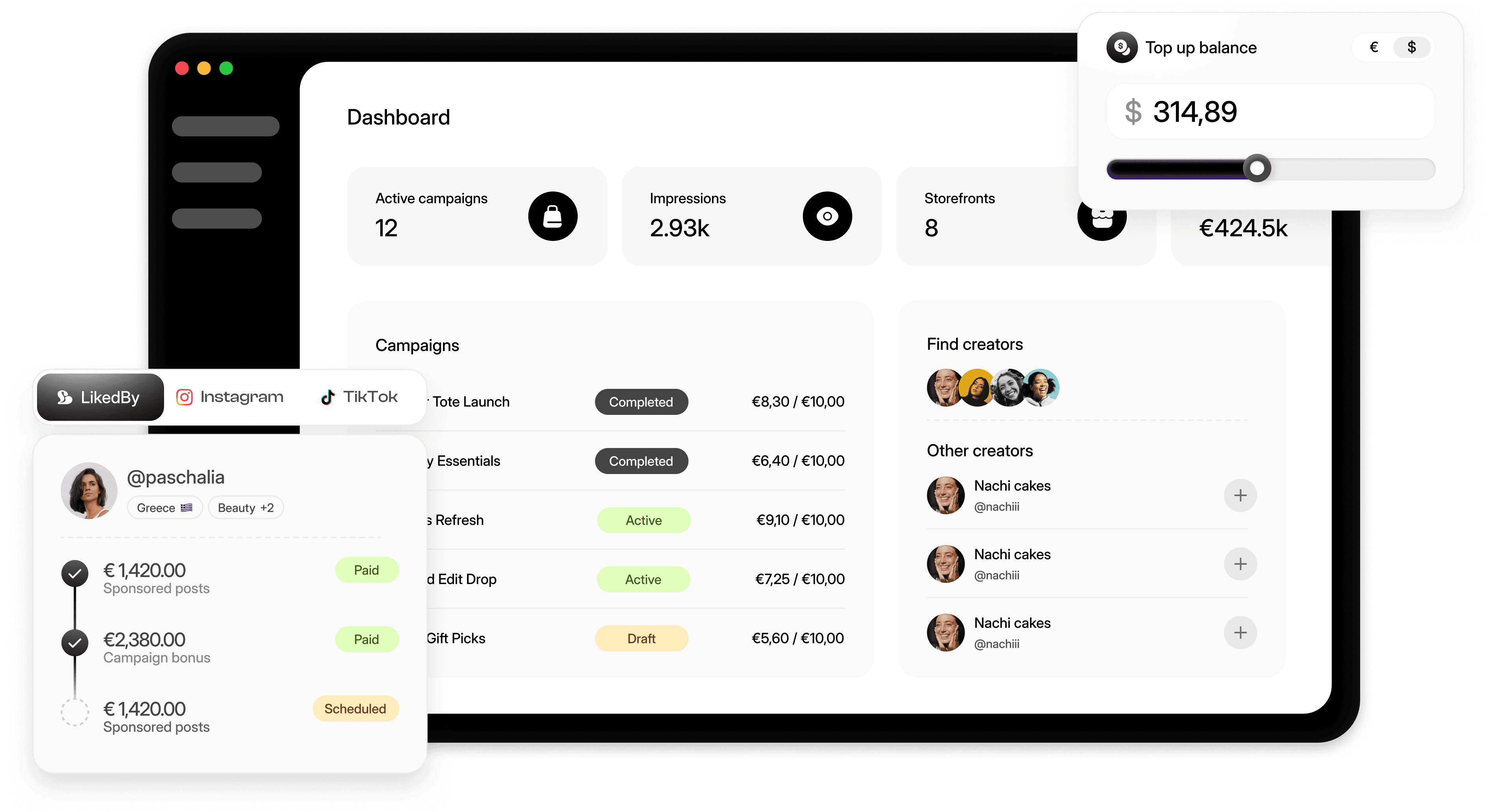 Socialscale can layer underneath your existing campaign workflow. Creators sourced and managed through Upfluence can be activated within Socialscale with storefronts, product tagging, and full attribution — extending the value of those relationships beyond campaign windows.