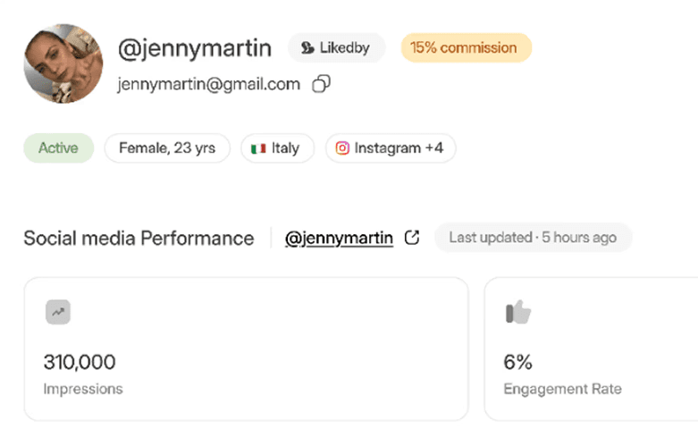 Move beyond spreadsheets. Store every creator’s profile, activity, and performance in one centralized CRM.