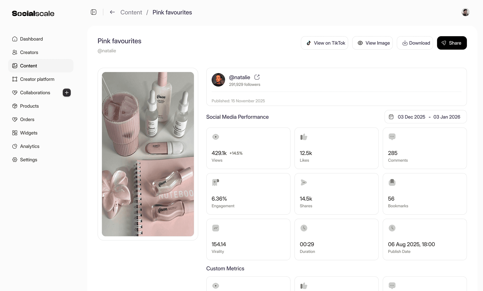 Bring content directly into Socialscale and track its performance without manual work.